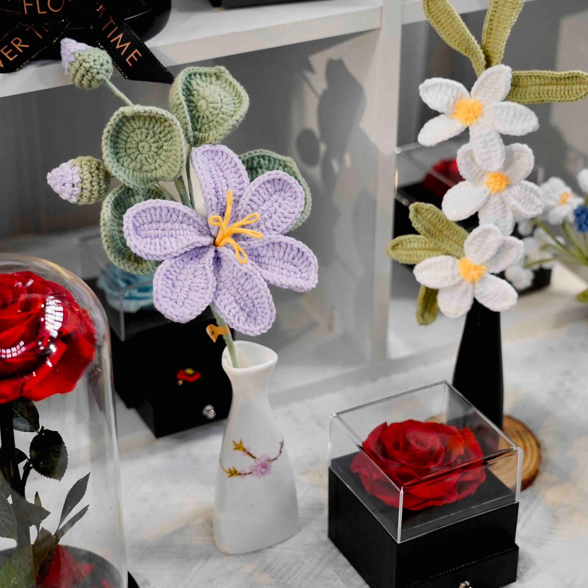 Thin wires are used in every part of the item—— including the stem, leaves, and petals. So you can easily adjust how you want the plant to look like (ie. Stem straight or wavy)