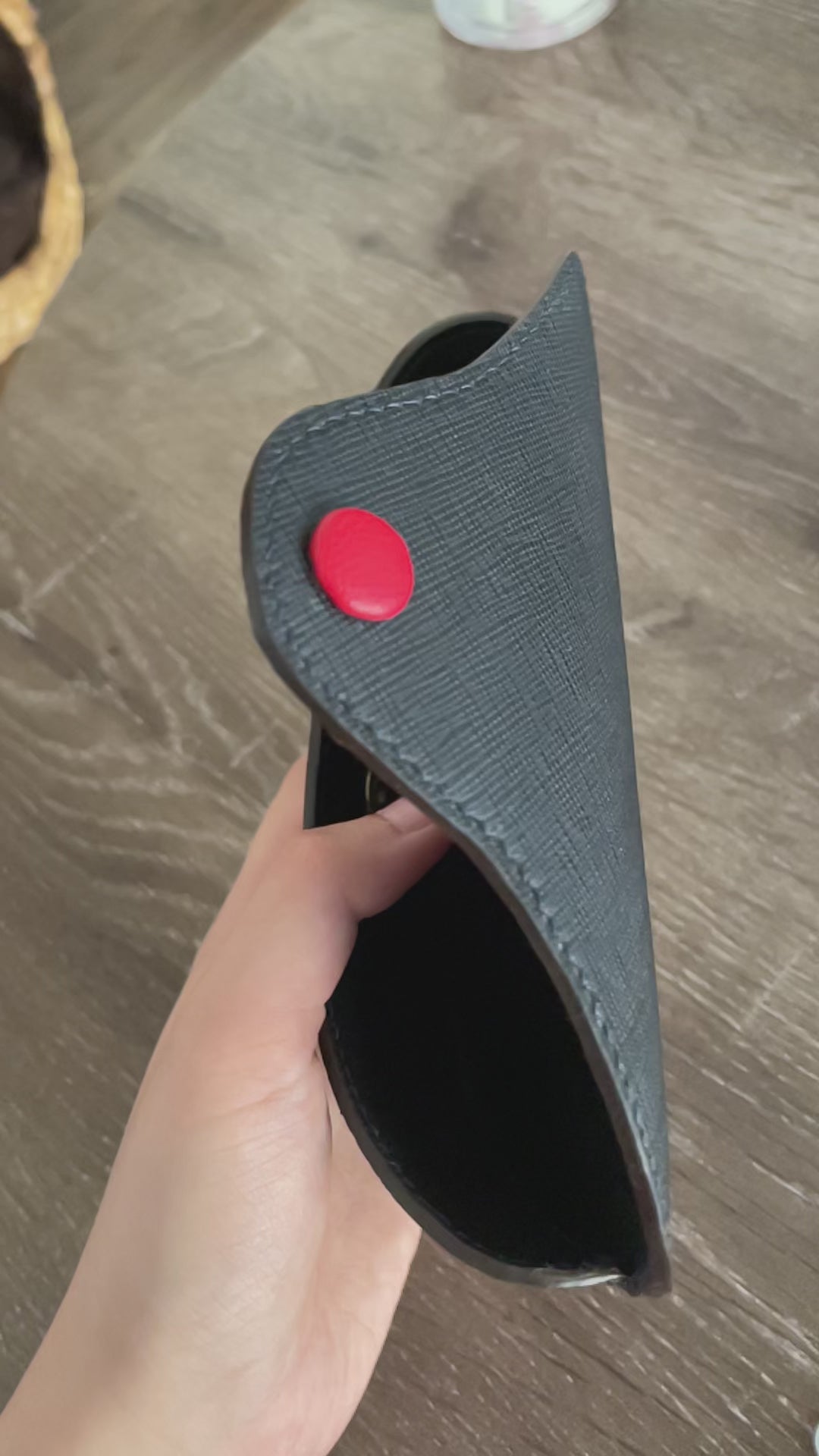 This glades holder is made from 2 layers of super premium leather —— calfskin on the outside and soft goatskin on the inside.